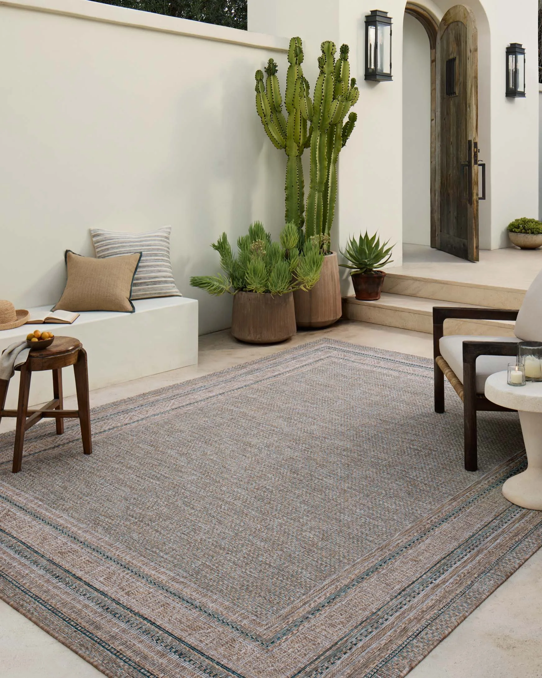 Inspired by the scenic mountain town in California, the Topanga Collection is an indoor/outdoor rug made of durable polypropylene that resembles natural fibers but is much more ready for sun, rain, and high-traffic use. The rug's modern construction also makes it easy to clean (just hose off and air dry), whether it's styled in a dining room, mudroom, or backyard patio.Classic geometric motifs bring a subtle pop of pattern to this sophisticated, neutral design by the celebrated interior designer Amber Lewis, made in collaboration with Loloi. This collection is OEKO-TEX certified, ensuring its materials don't contain harmful substances.