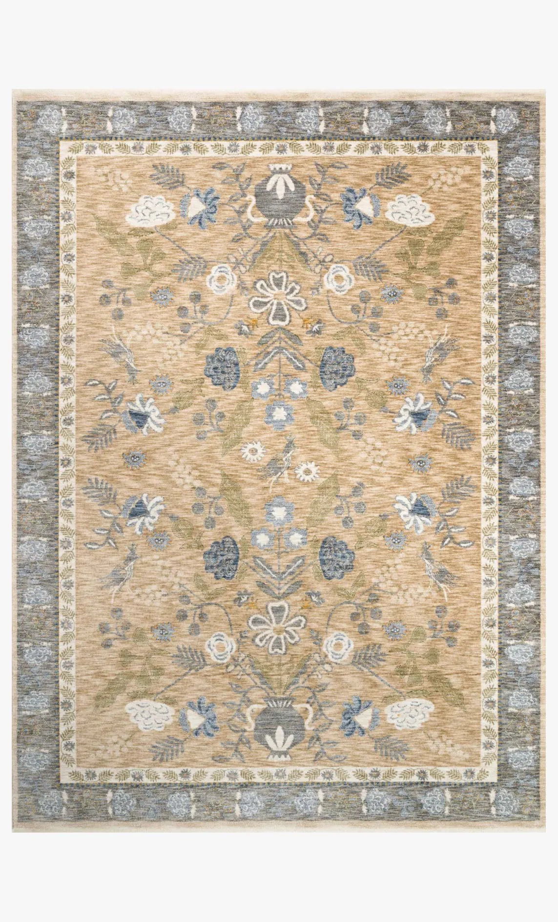 Thoughtfully designed with botanical motifs, each piece features a soft pile that doesn’t shed and finished with a subtle fringe. The Kismet Collection for Rifle Paper Co. x Loloi is highly durable and power loomed in Turkey.
