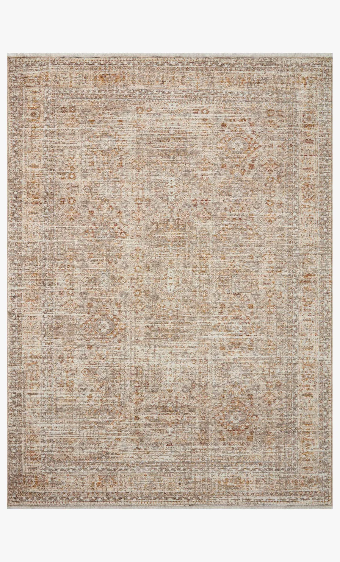 Designed in an expertly distressed antique style, the Blake Collection by Angela Rose x Loloi features traditional motifs that have softened into the background, making it an effortless neutral in any room. Muted earth-toned palettes complement a range of furniture, while subtle cream-colored fringe at the edges add texture and framing. The Blake Collection is power-loomed in Turkey of 100% polyester pile.