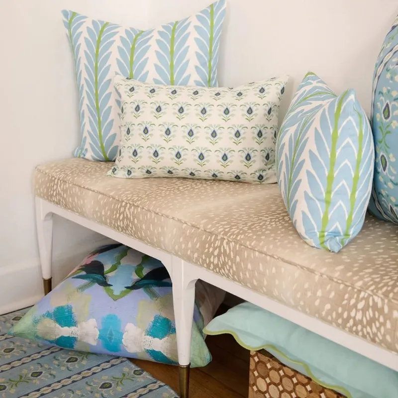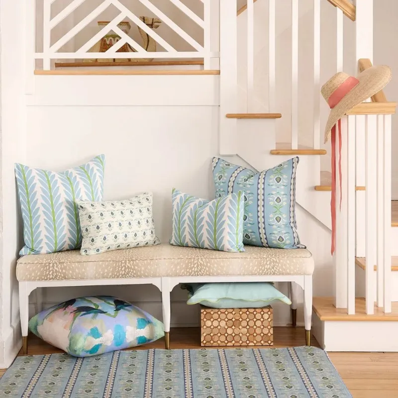 Crisp, classic, and endlessly versatile. Soft botanical motifs in fresh French blue bring a calm, polished touch to sofas, beds, and accent chairs. An easy layering piece that adds color without overpowering the space.