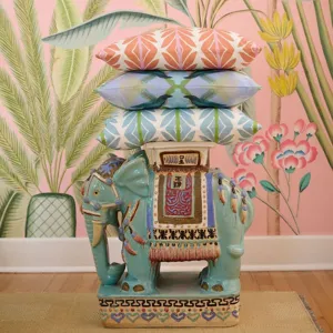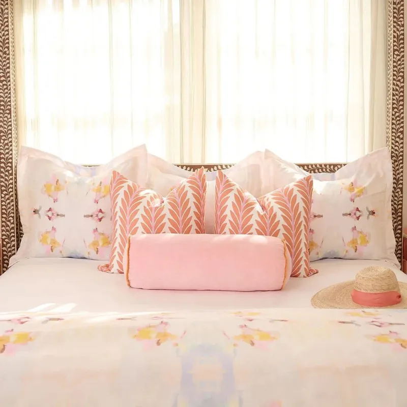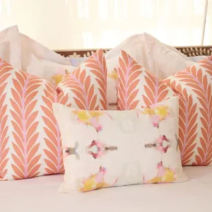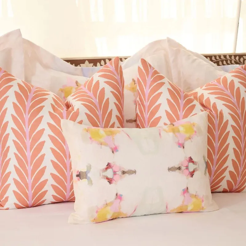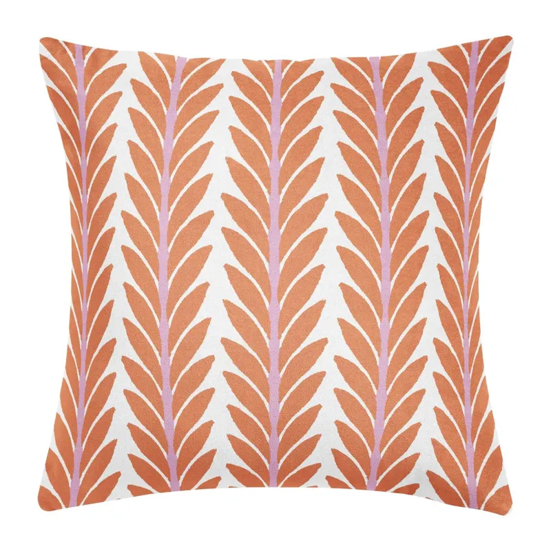 A bold burst of color with laid-back charm. Vibrant frond motifs in orange and white add energy and personality to sofas, beds, and accent chairs. Perfect for mixing with neutrals or layering with other prints.