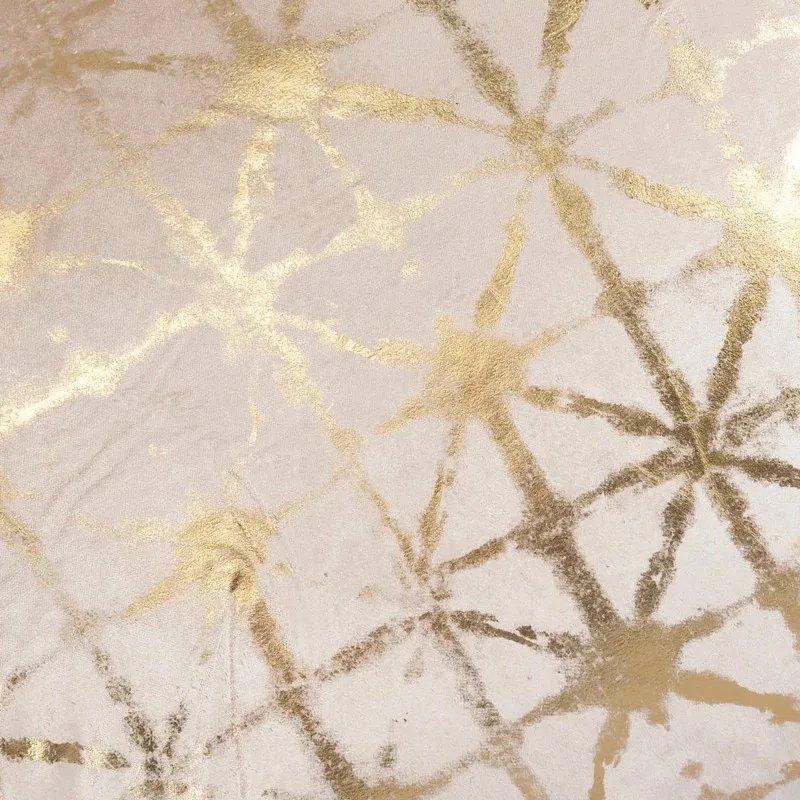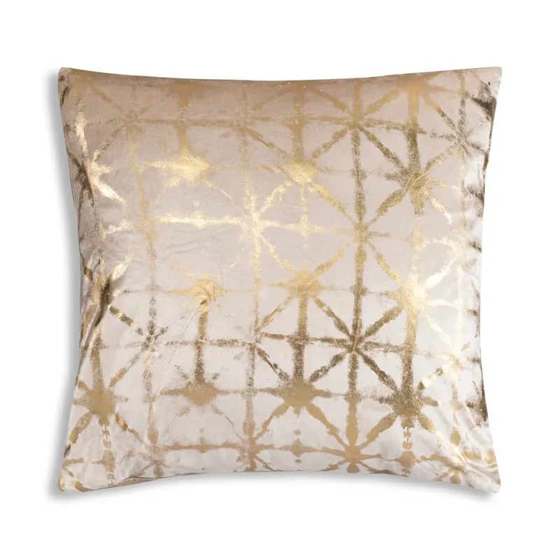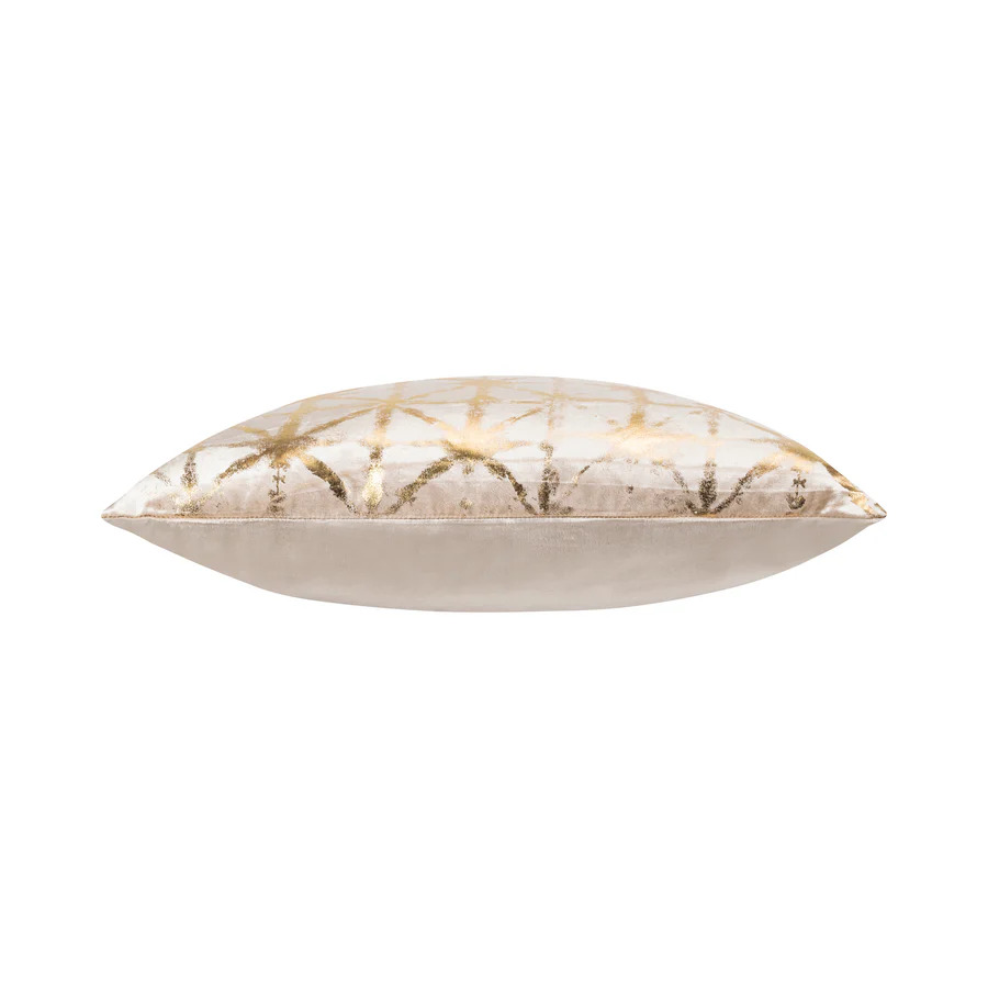 Introducing the Kora pillow, where geometric metallic foil print meets sumptuous velvet fabric. Elevate any room with a touch of glamour and sophistication when you adorn it with this stunning pillow.