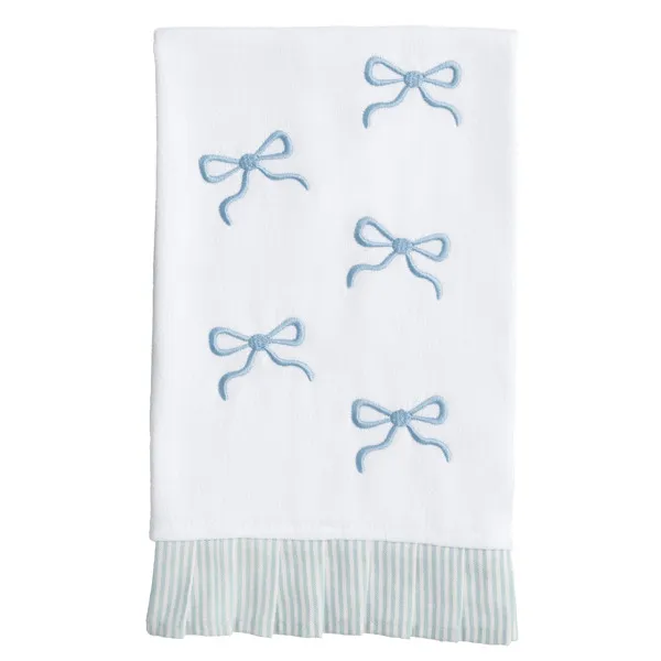 Bows Embroidered Towel offers a touch of elegance and charm to your bathroom decor. Crafted from 100% premium cotton, this terry cloth hand towel ensures superior softness and absorbency, making it perfect for everyday use. The intricate bow embroidery adds a delicate and sophisticated detail, enhancing its aesthetic appeal. Featuring a contrast gingham or ticking stripe pleated hem, this towel brings a classic yet stylish look to any setting. Ideal for guest bathrooms or as a thoughtful gift, it combines functionality with a decorative flair, ensuring it stands out in any home.