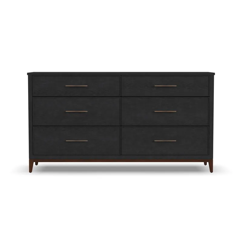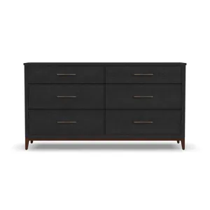 Waterfall Dresser (W1027-860): 65 x 18 x 35 - Add effortless style and architectural appeal to your living room with the Waterfall round end table. This striking table features a timeless silhouette defined by clean lines and simple geometric shapes, including a substantial sculptural crisscross base that supports the top. Group and nest this table with the coordinating Waterfall round coffee table for added visual interest and function. The Waterfall round end table is well-crafted from solid rubberwood with oak veneers and features a deep ebony finish for lasting beauty.This architectural design fits well with transitional spaces, The deep ebony finish is accompanied by dark brown base accents, Constructed with rubberwood solids and oak veneers, Six spacious drawers for storage, Drawers are constructed with dovetail joinery for superior strength and contain soft-close, undermount glides, Dark, antique copper hardware, Anti-tip kit included with safety-tested mounting hardware and instructions, Simple assembly required with included tools.