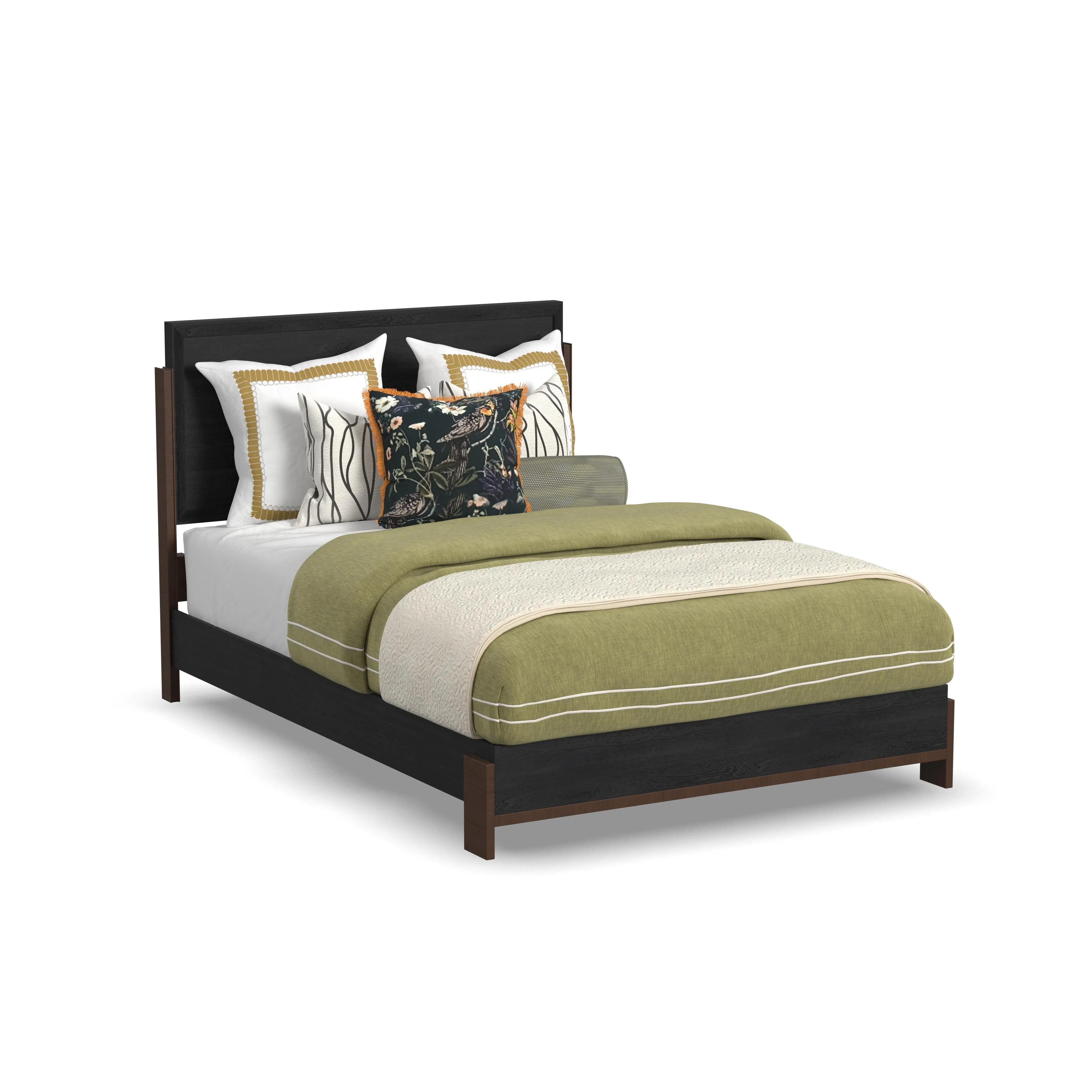 Waterfall King Panel Bed (W1027-91K): 81 x 94 x 50 - Add effortless style and architectural appeal to your bedroom with the Waterfall Queen panel bed. This platform-style bed features a timeless silhouette defined by clean lines and simple geometric shapes. Dark brown-finished base accents add a striking contrast to the deep ebony finish, while the clean, rich headboard brings an element of softness to the aesthetic. Expertly crafted from solid rubberwood and oak veneers, the Waterfall Queen bed offers lasting beauty you can feel good about. This architectural design fits well with transitional spaces, The deep ebony finish is accompanied by dark brown base accents, Constructed with popular and rubberwood solids and oak veneers, Box spring mattress not required, Comes with mattress support slats.