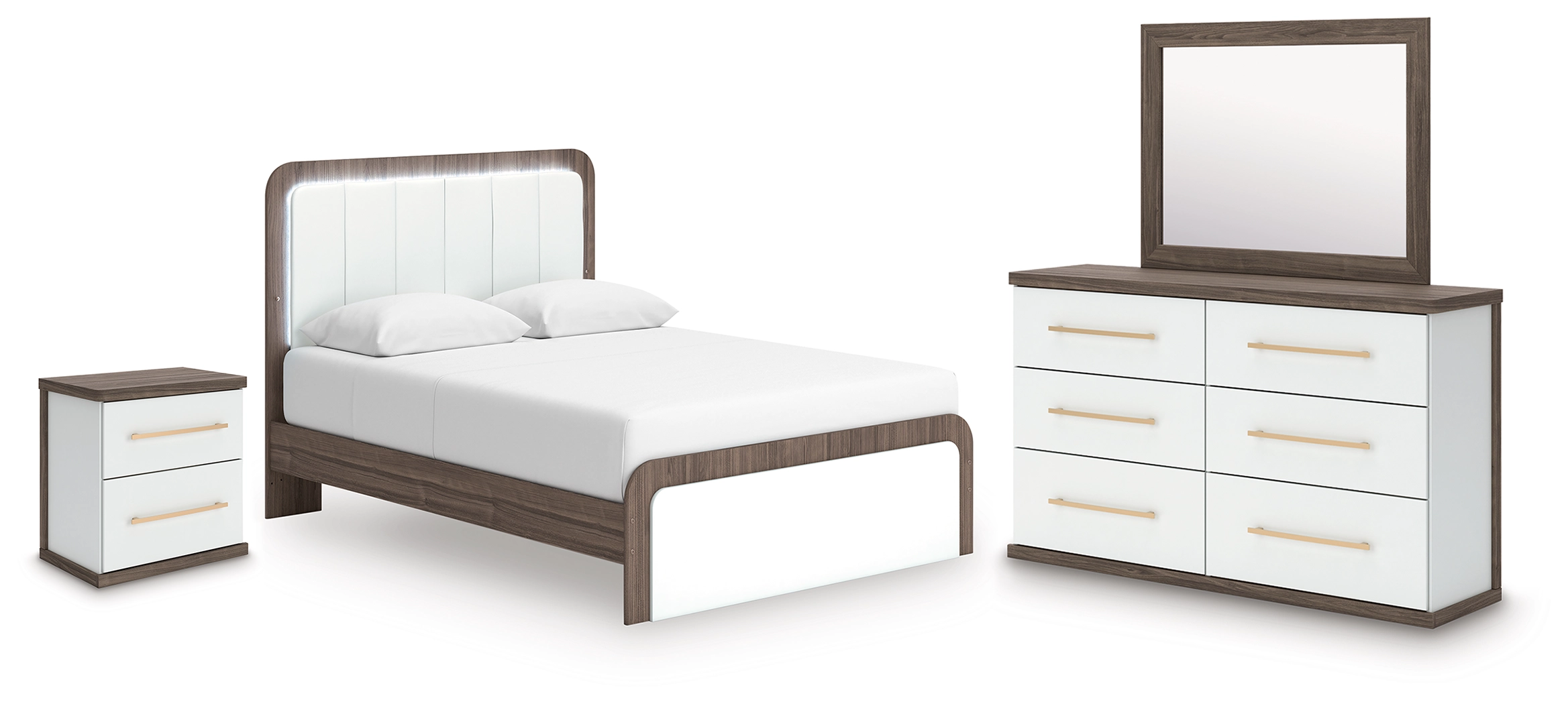 Kendanport Queen Upholstered Bed, Dresser, Mirror and Nightstand
