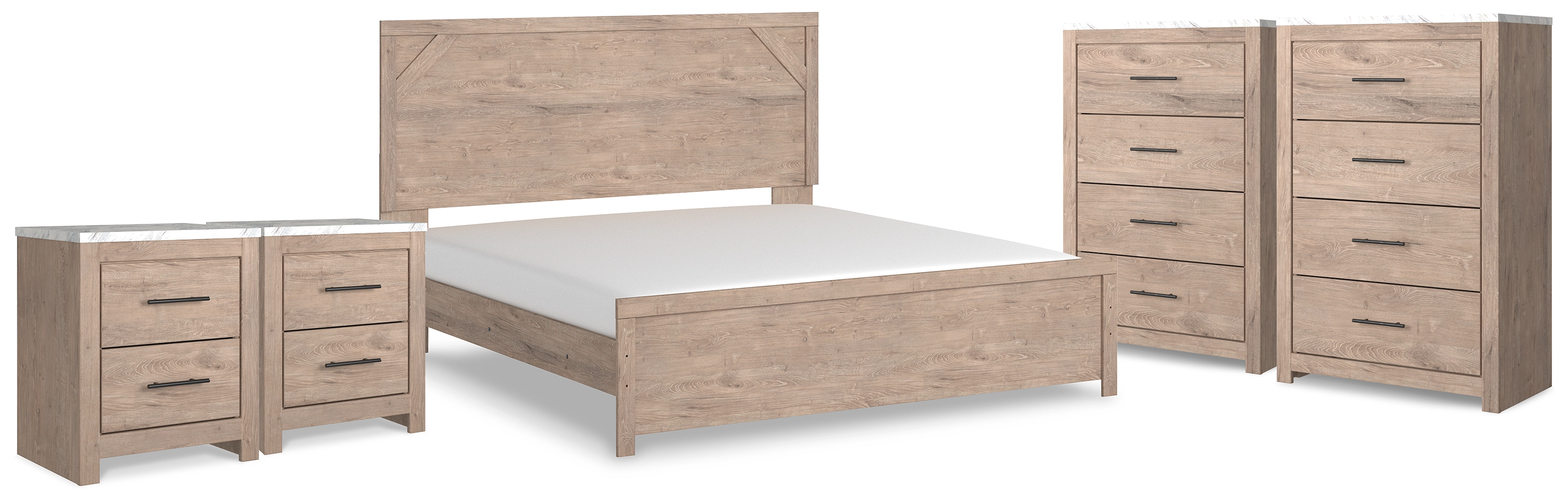 Senniberg King Panel Bed, 2 Chests and 2 Nightstands