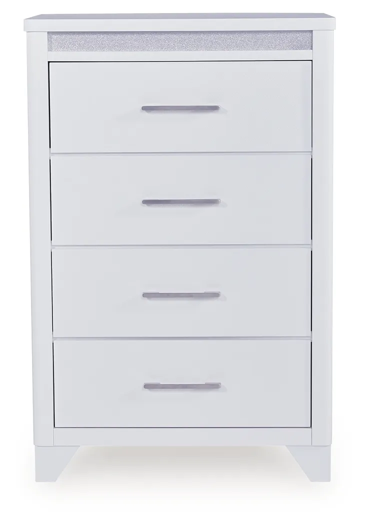 This chest of drawers is a showstopper, bringing a touch of modern glamour to your sanctuary. A sleek white finish and inset glitter accents create a sophisticated feel, while spacious drawers provide practical storage. It’s a simply stunning way to achieve the bedroom of your dreams.