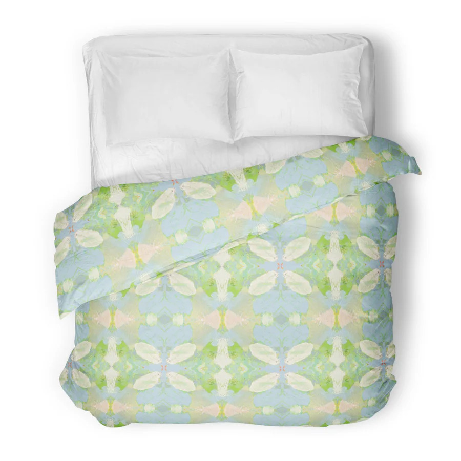 Inspired by Laura's original art, our colorful duvet covers offer a unique and artistic touch to any bedroom! Pair with our matching shams for a bold statement or simplify with our white scalloped shams with a colored piping for an elegant look.