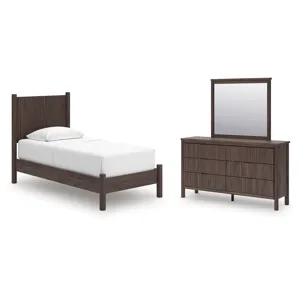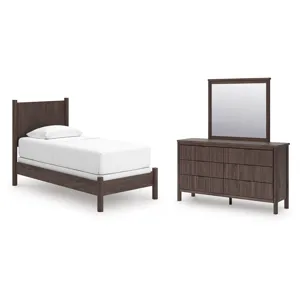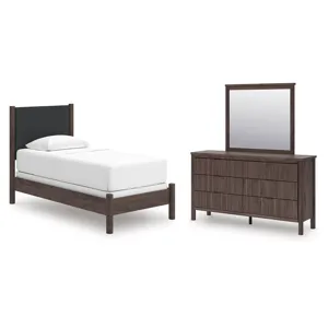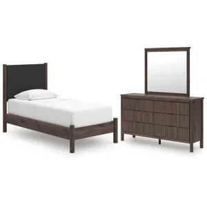 This bedroom mirror is made with engineered wood (MDF/particleboard/plywood) and decorative laminate. Pairs with other items in the series to make a dresser and mirror kit.