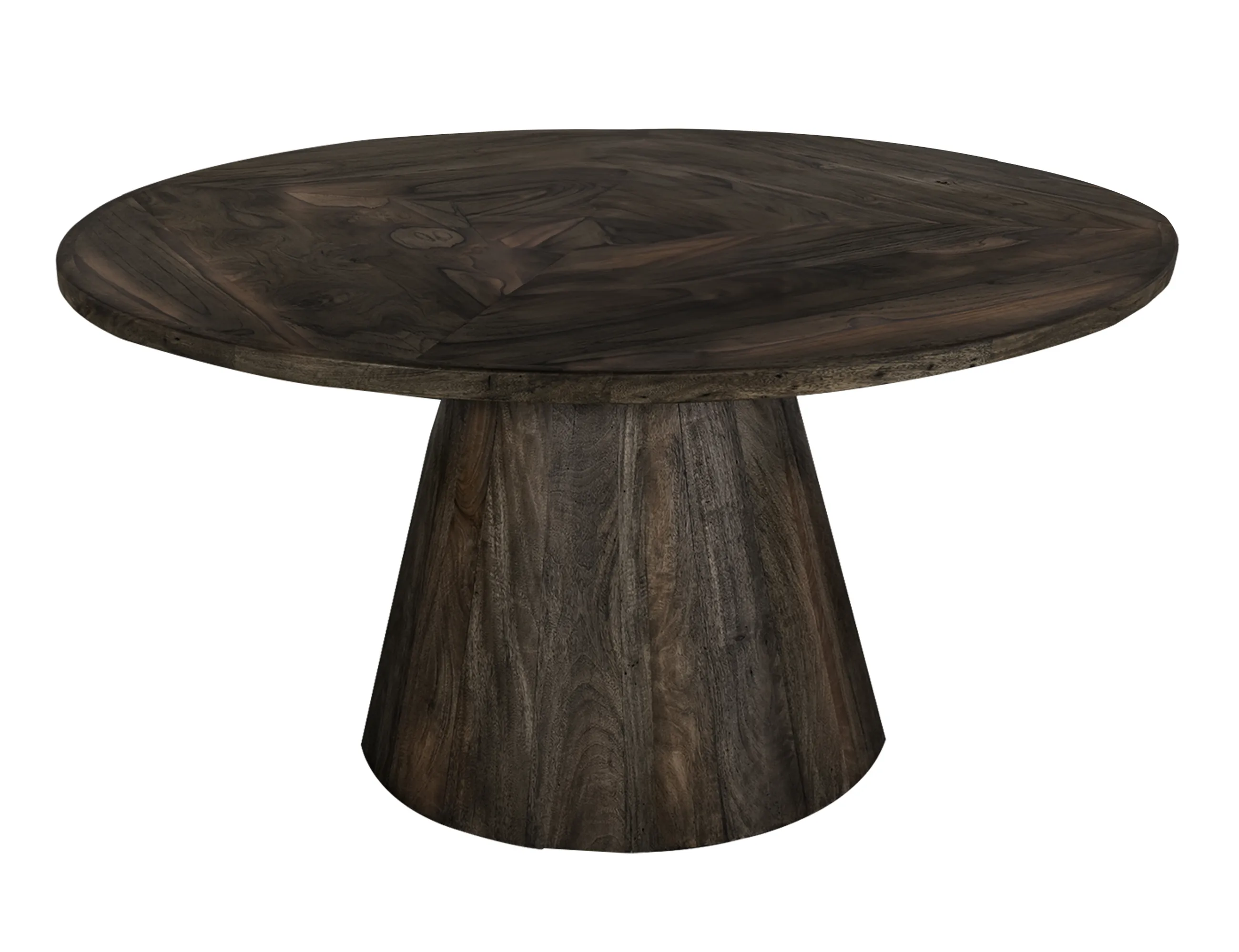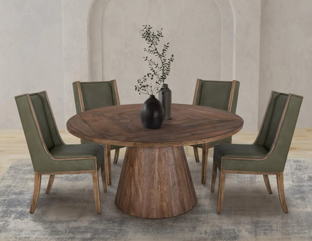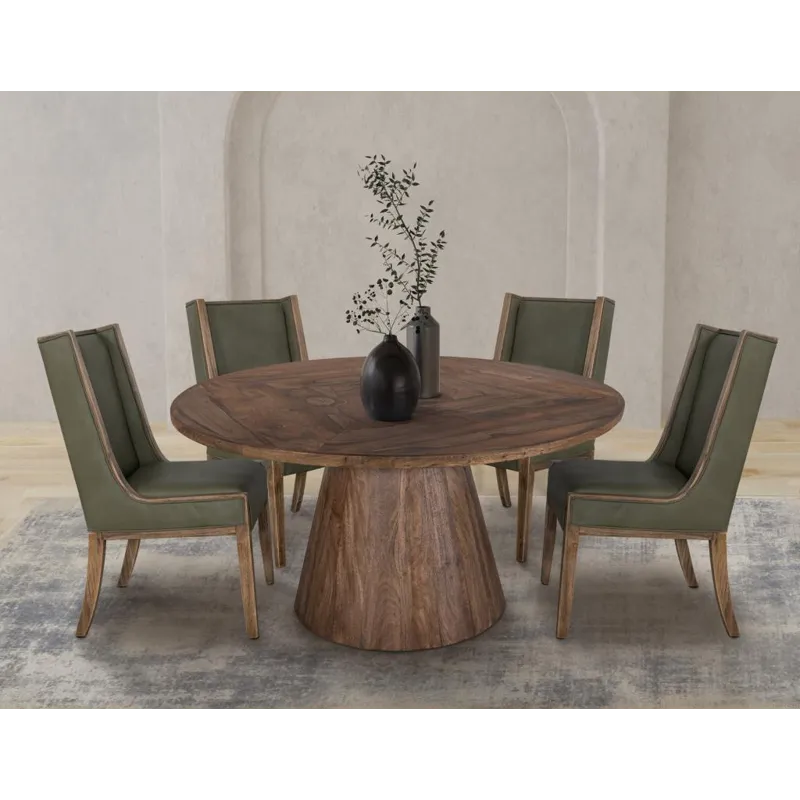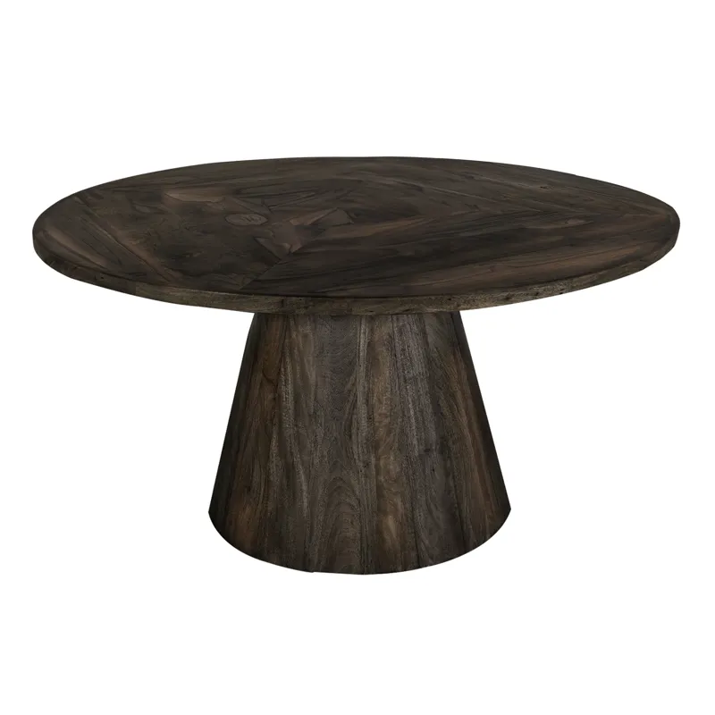 Black Balam, Round Dining Table (IFD4421DINTBLRD): 59.75 x 59.75 x 29 - Our Balam collection is handcrafted from mango and teak wood, offering a simple yet stunning addition to your space with an organic, modern touch. The Balam table features a sturdy, conical wooden base that showcases the beautiful, natural grain of the wood, providing a solid foundation for the smooth, round tabletop. Elevate your dining experience by pairing this table with the stylish chairs available in the collection, creating an inviting atmosphere in your home.