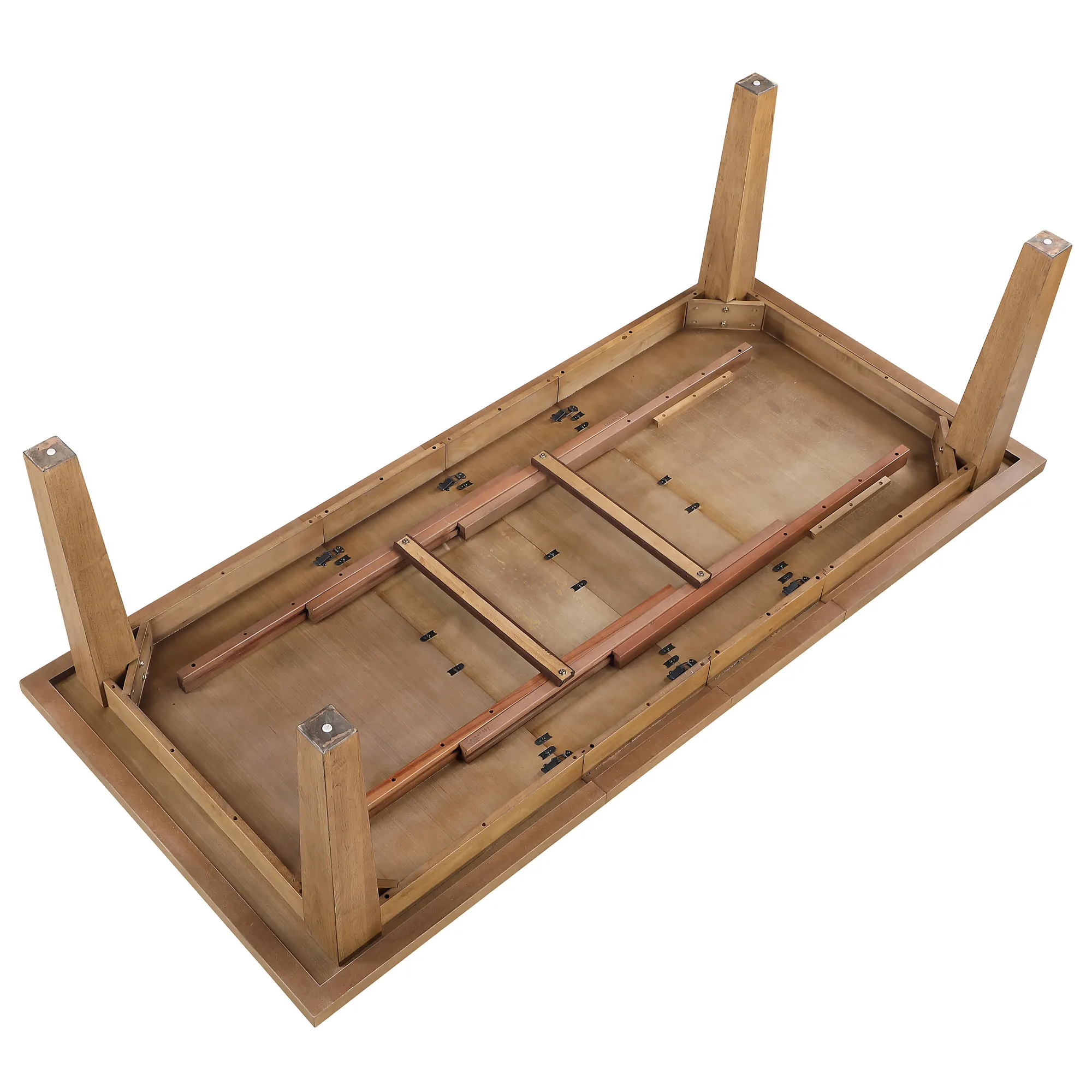 - The 64-inch dining table comes with two 16″ leaves to extend the table to 80 or 96 inches when extra guests arrive, to seat up to eight comfortably