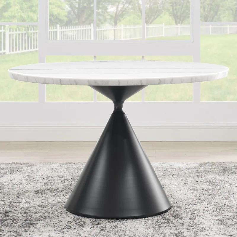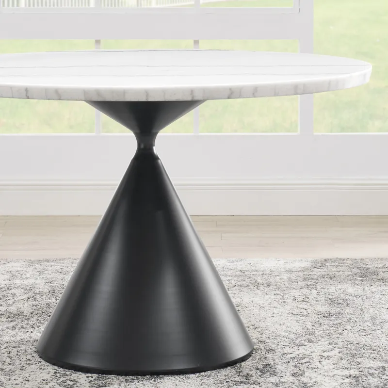 The Conrad 5-Piece 48″ Round White Marble Dining Set With Black Base may be available at American Factory Direct in the