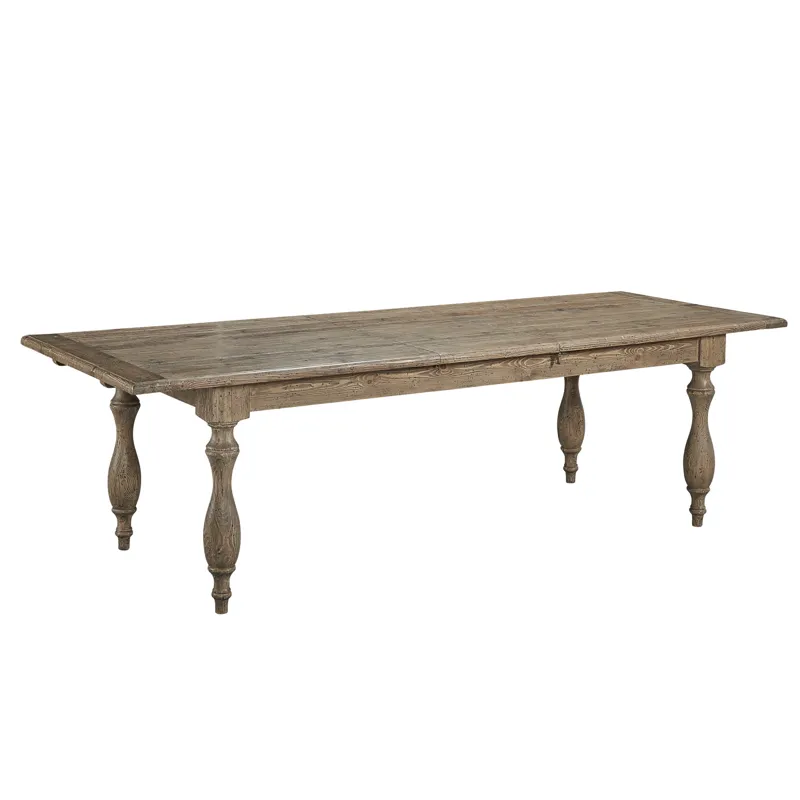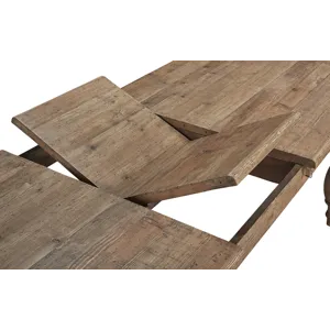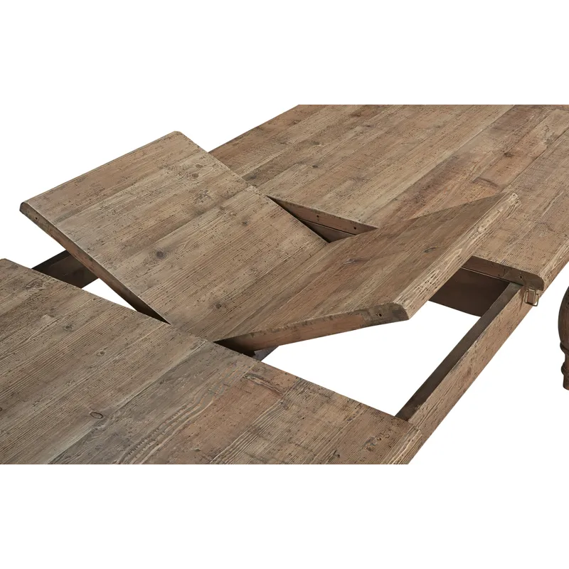 Concealing a butterfly leaf, this generously scaled table will stretch to accommodate your largest holiday gatherings. Reclaimed pine with a black washed undertone and family friendly clear coat finish is used to craft this beautiful table. The neutral wood tone allows you to use your imagination when selecting your chairs.