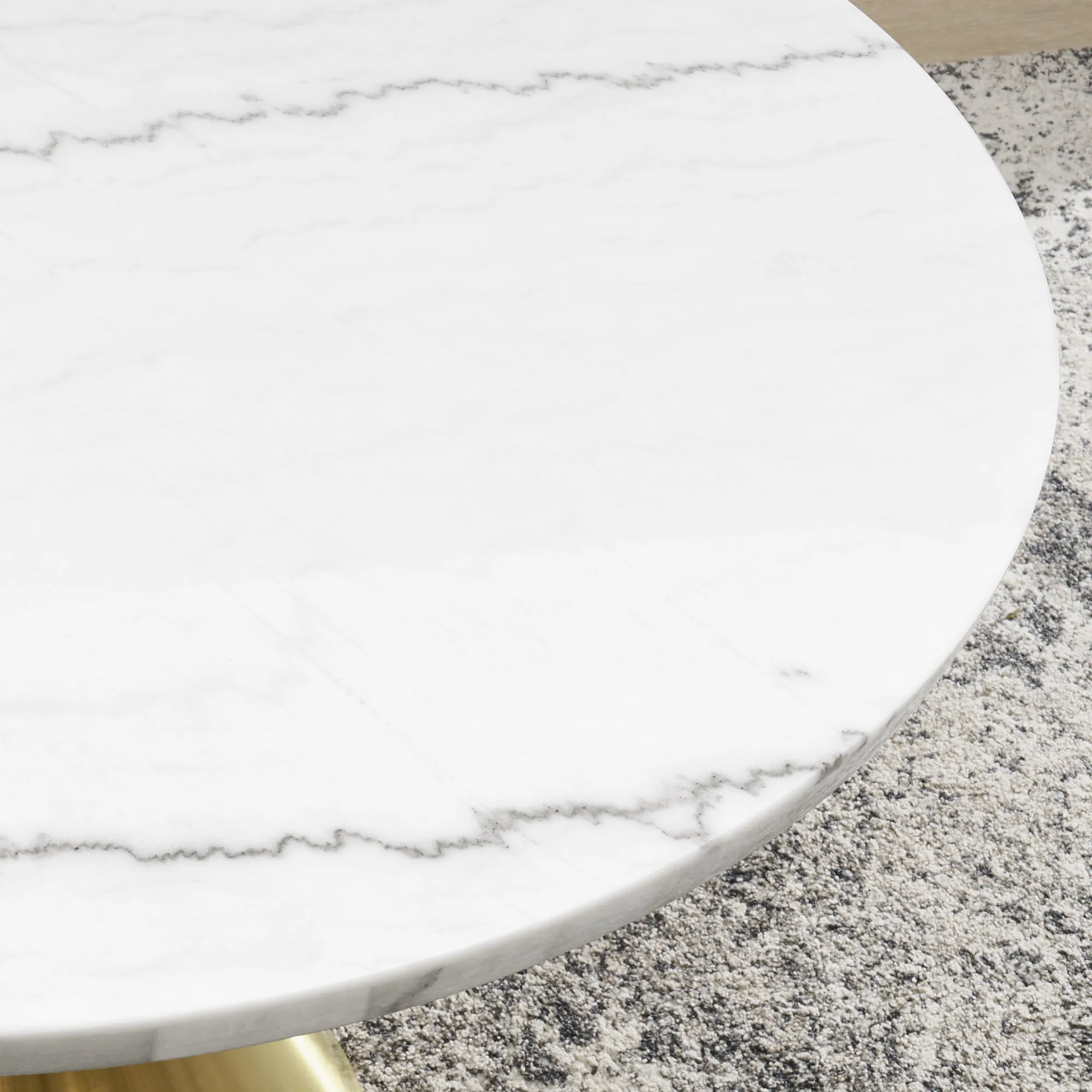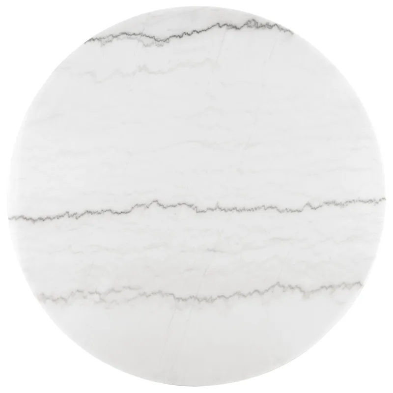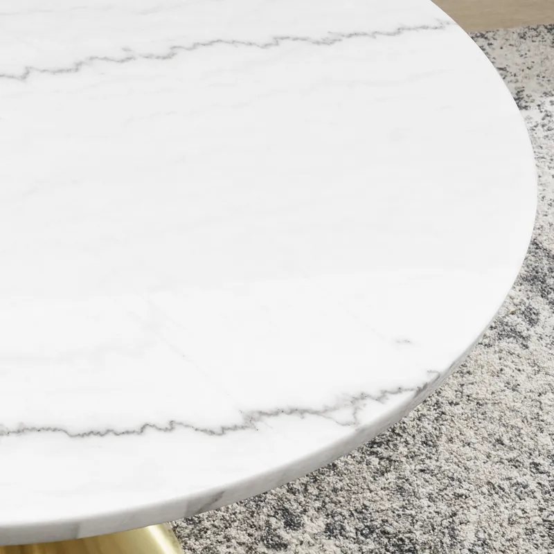 - Crafted of 6 mm white marble veneers and engineered woods with a gold iron base