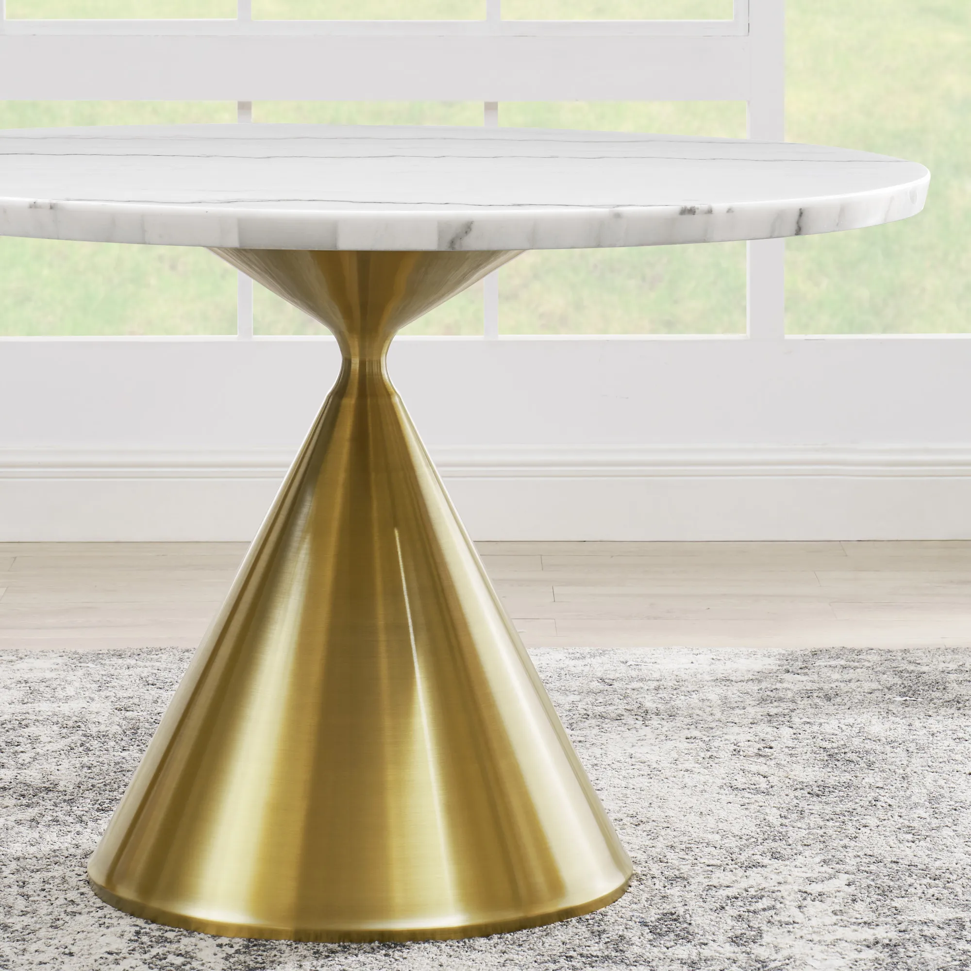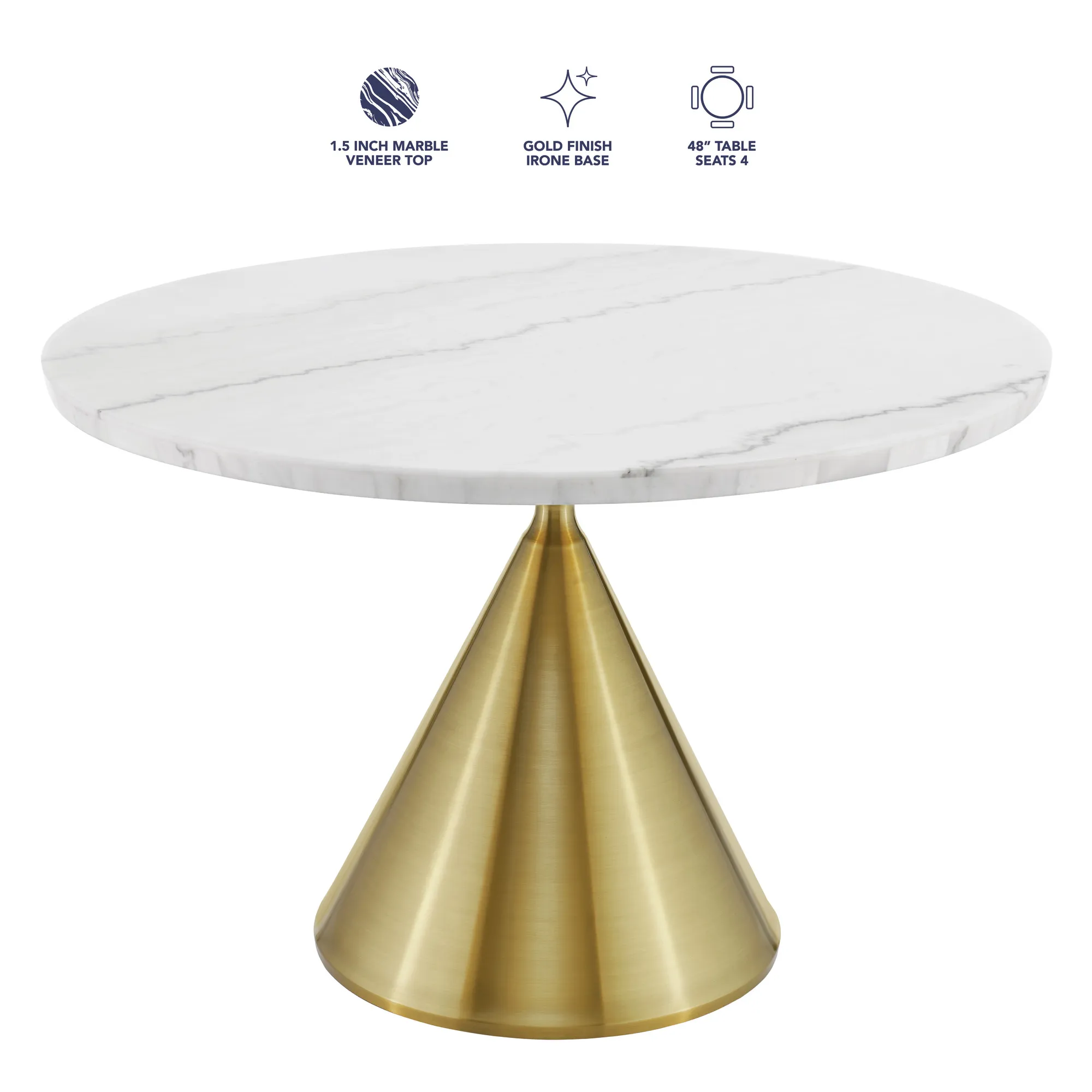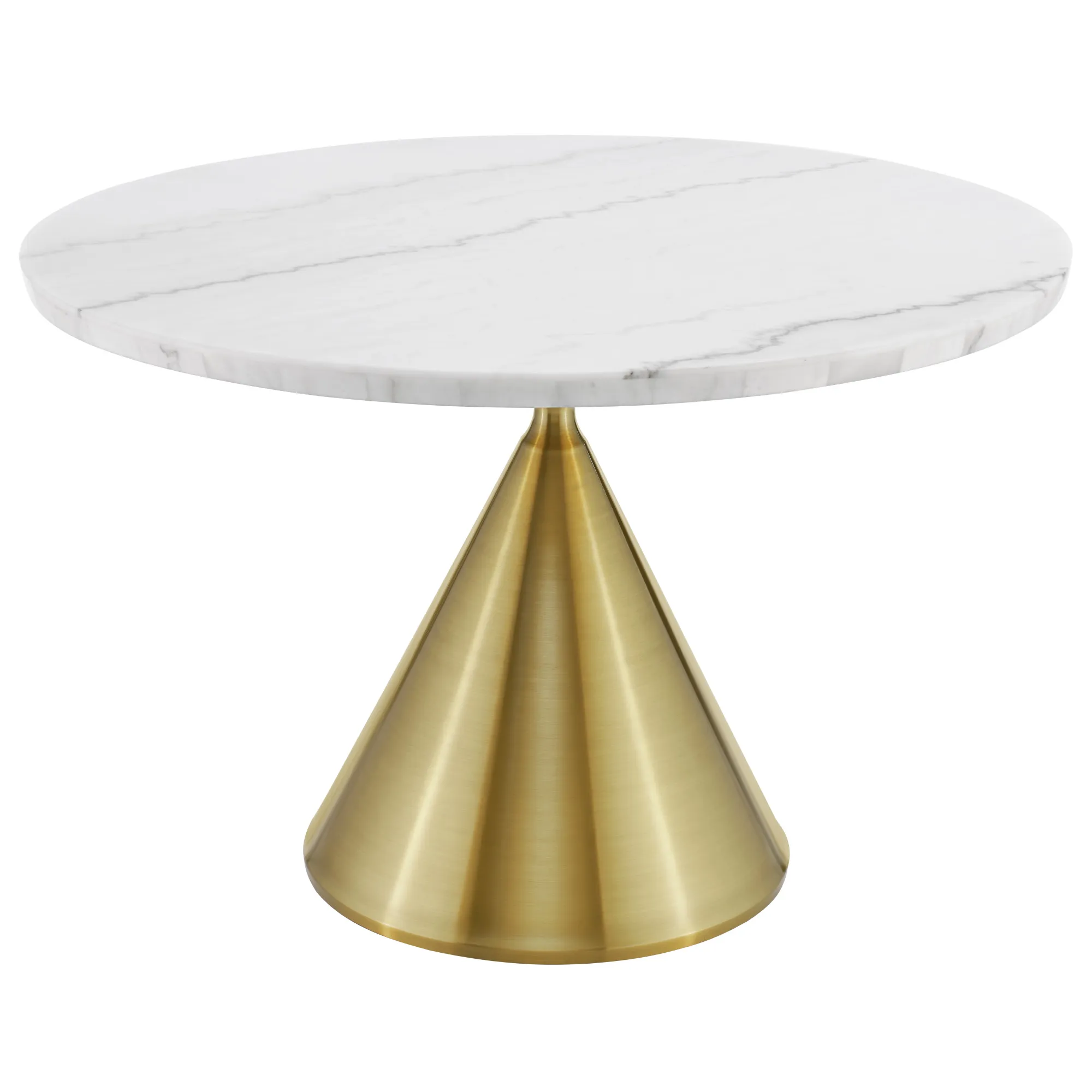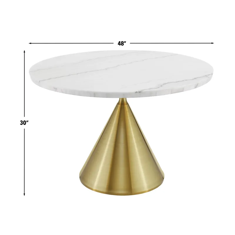 The Conrad 48″white Marble Top Table With Gold Conical Base may be available at American Factory Direct in the