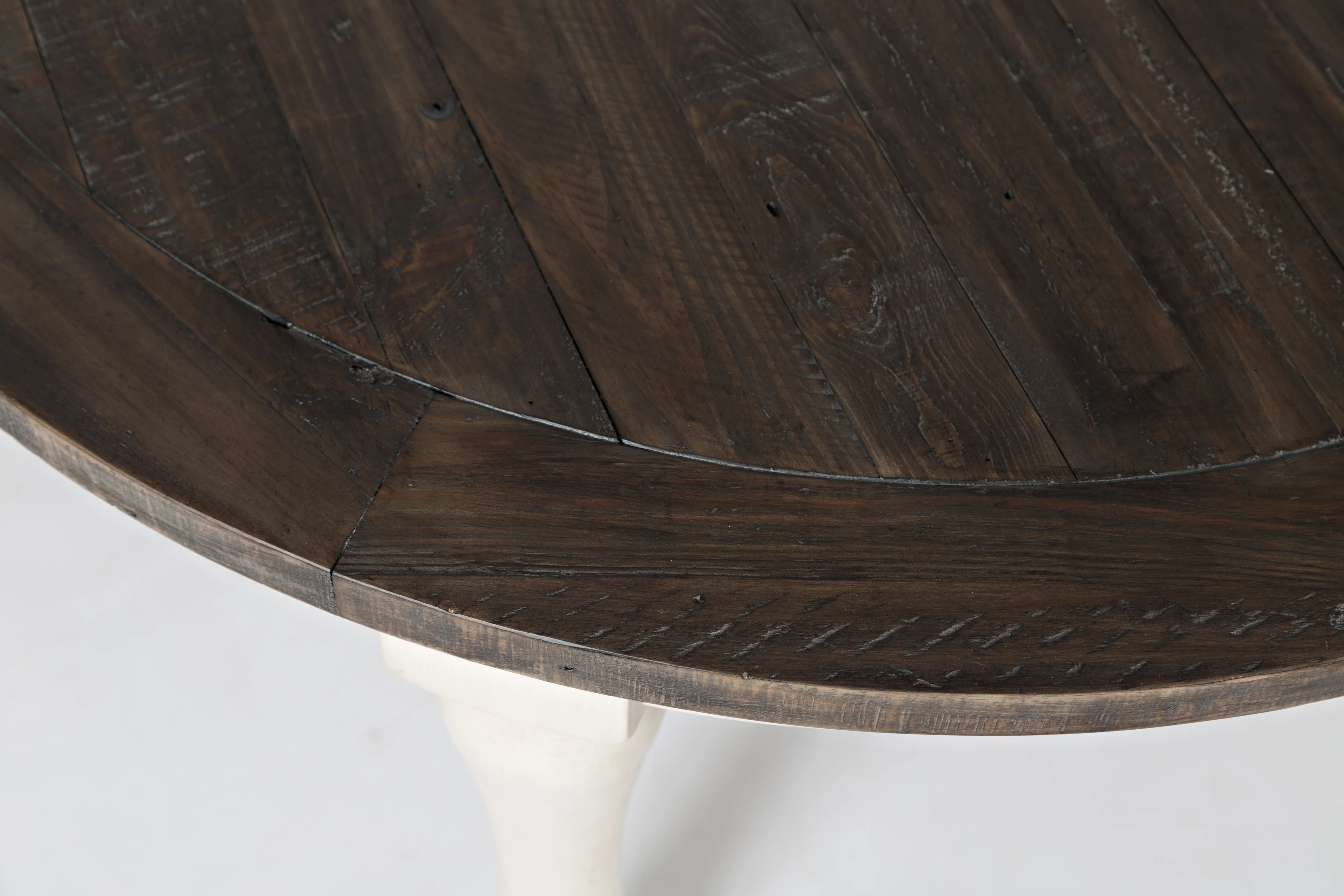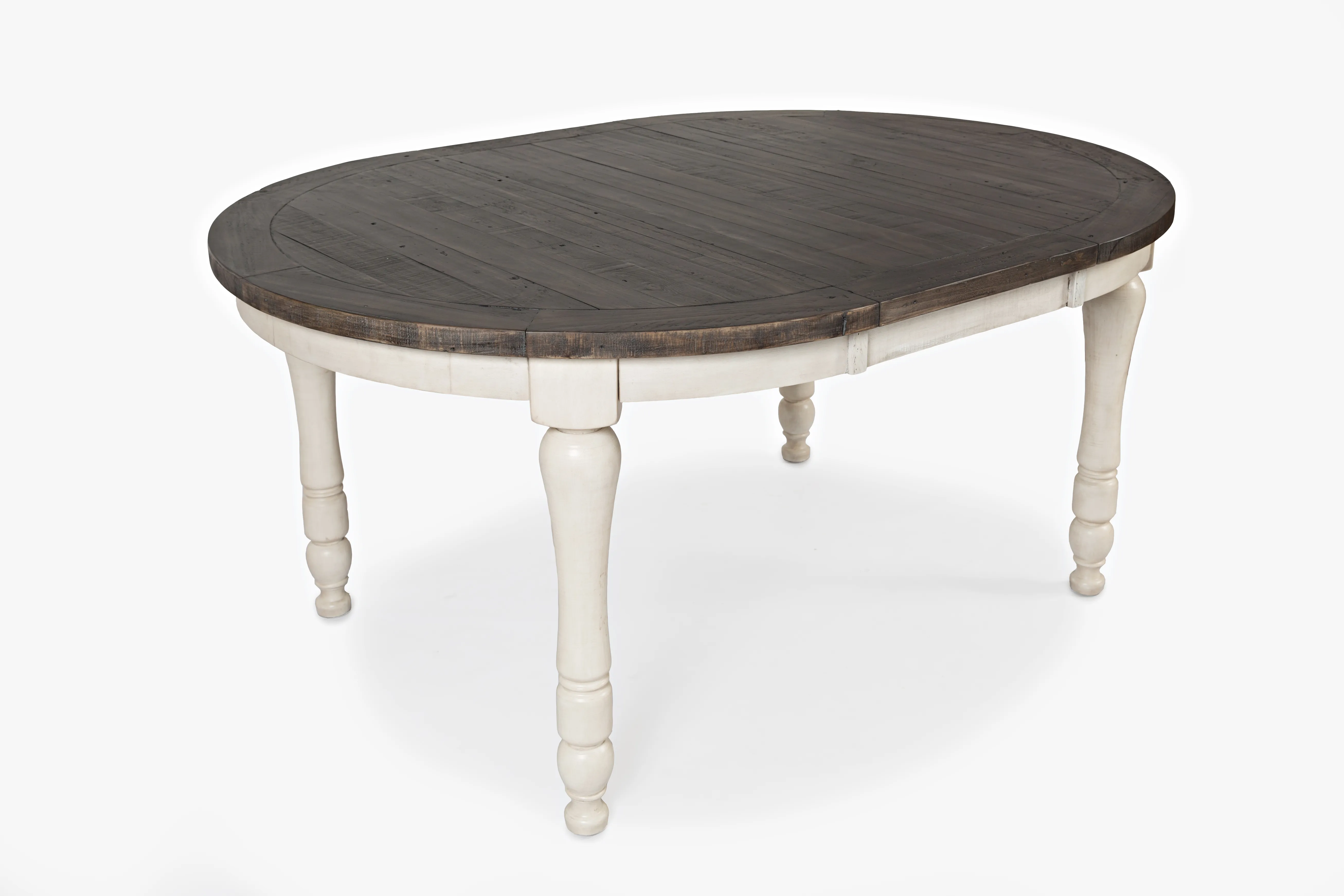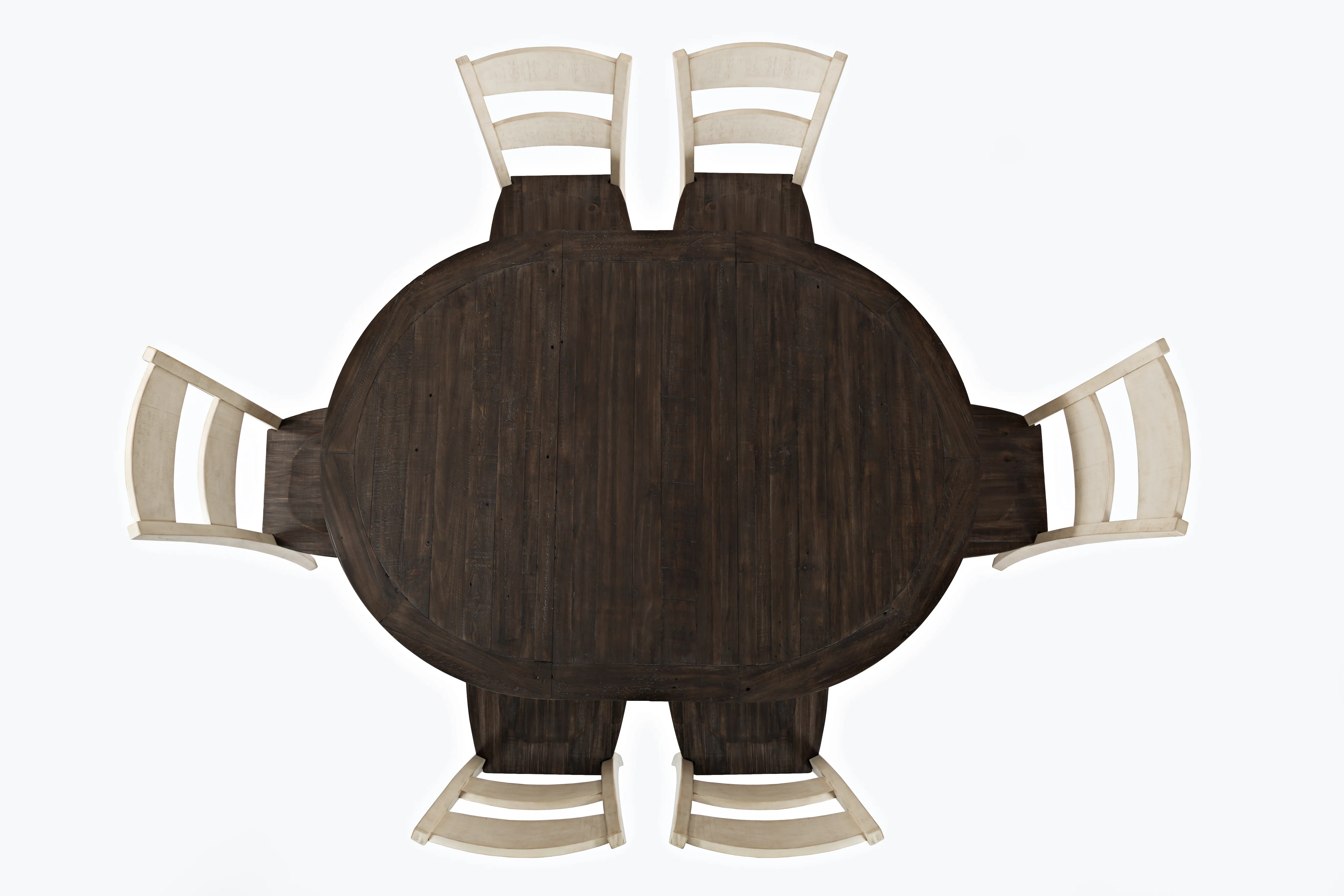 Experience the elegance of rustic farmhouse craftsmanship with the Madison County Collection. Made from solid reclaimed Pine, each piece showcases the natural beauty of the wood through unique weathering and intentional stress markings. Upgrade your dining room for entertaining guests or intimate family dinners with this absolutely stunning 66" long extension dining table that converts from Round to Oval shape with the included extension leaf.