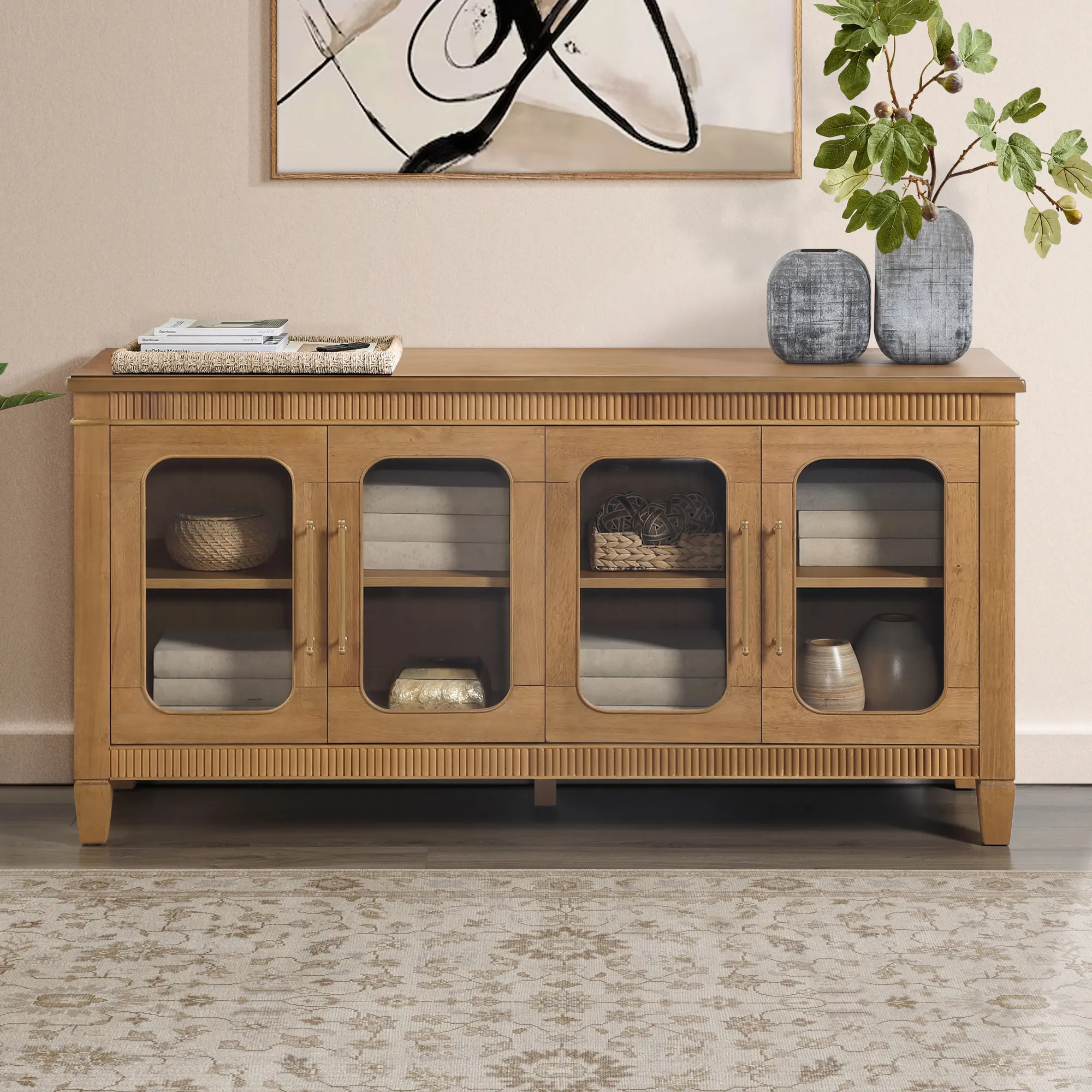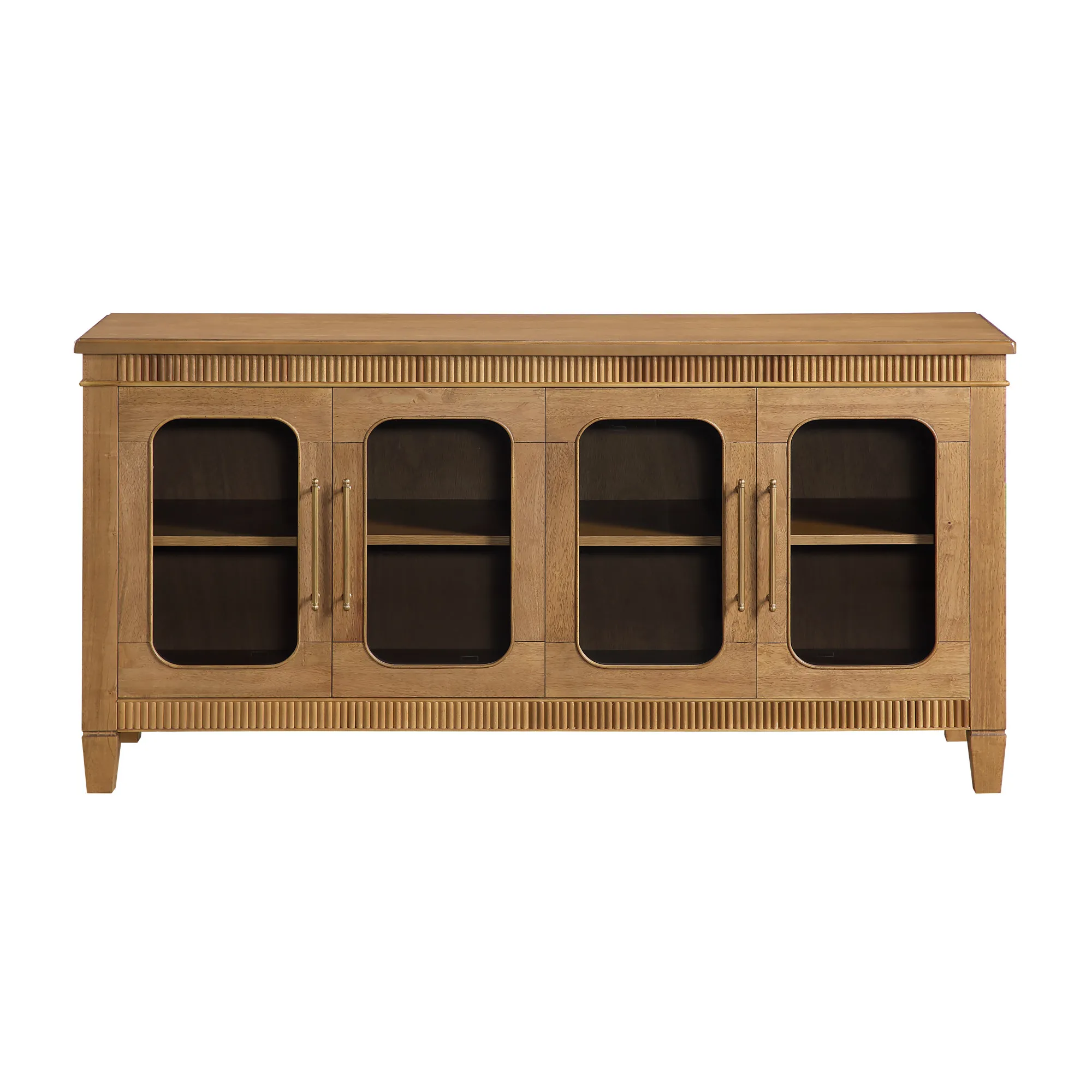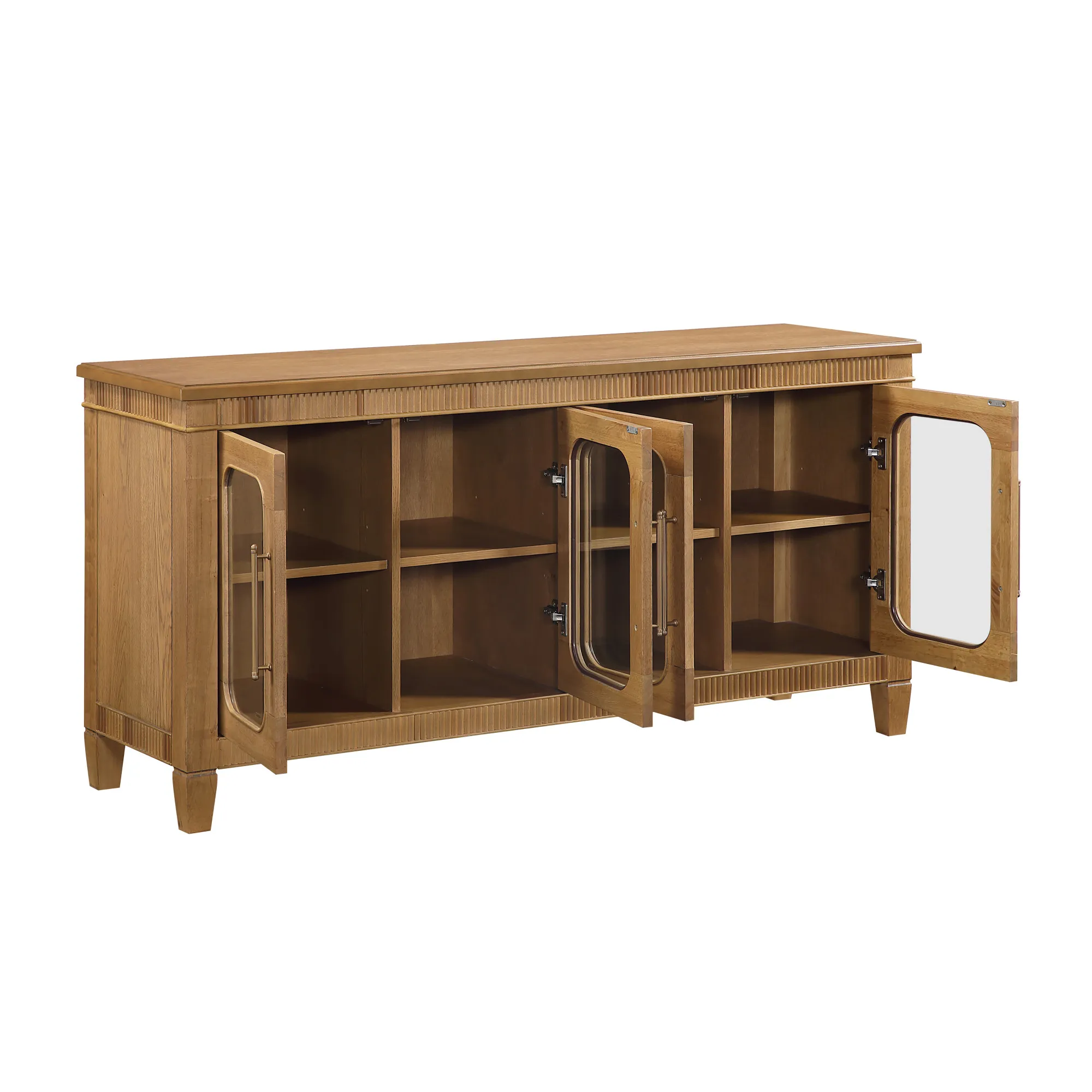 The Preston Butterscotch Server brings warmth, charm, and versatile functionality to any room. Its rich butterscotch finish highlights the classic dentil molding and rounded glass doors, creating a welcoming, stylish presence. Four adjustable shelves provide customizable storage within four spacious cubbies, while magnetic latch doors ensure secure, reliable closure. Perfect as a dining server, entertainment console, hallway accent, or sofa table, Preston offers beautiful display options, practical organization, and a timeless design that enhances both traditional and contemporary interiors with effortless appeal.