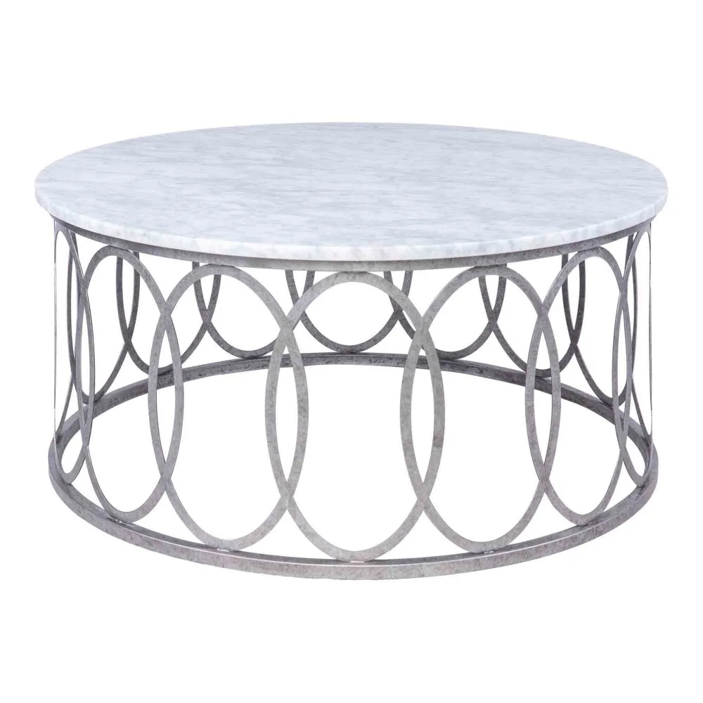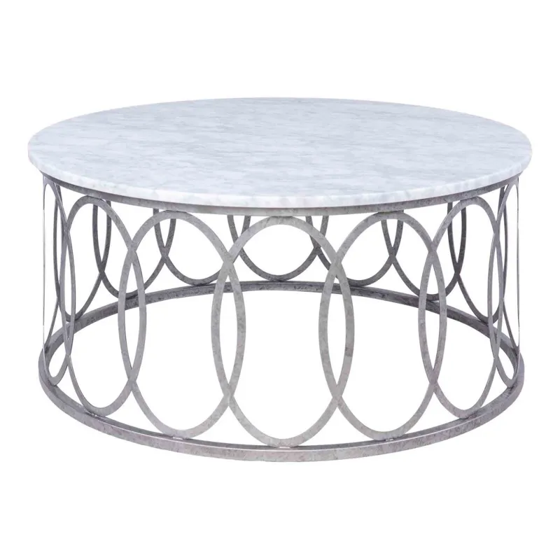 Lend a look of luxury to living room d?cor with the elegant New Orleans coffee table. This round coffee table features an open base with circular designs for an eye-catching look with a classy, artistic edge.