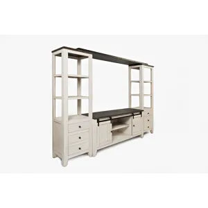 Experience the elegance of rustic farmhouse craftsmanship with the Madison County Collection. Made from solid reclaimed Pine, each piece showcases the natural beauty of the wood through unique weathering and intentional stress markings. Upgrade your living room with the comfortable and sophisticated style of this 60" Barn Door Media Console. With two shelves and two full size rolling barn doors, this is the perfect centerpiece for family movie night.