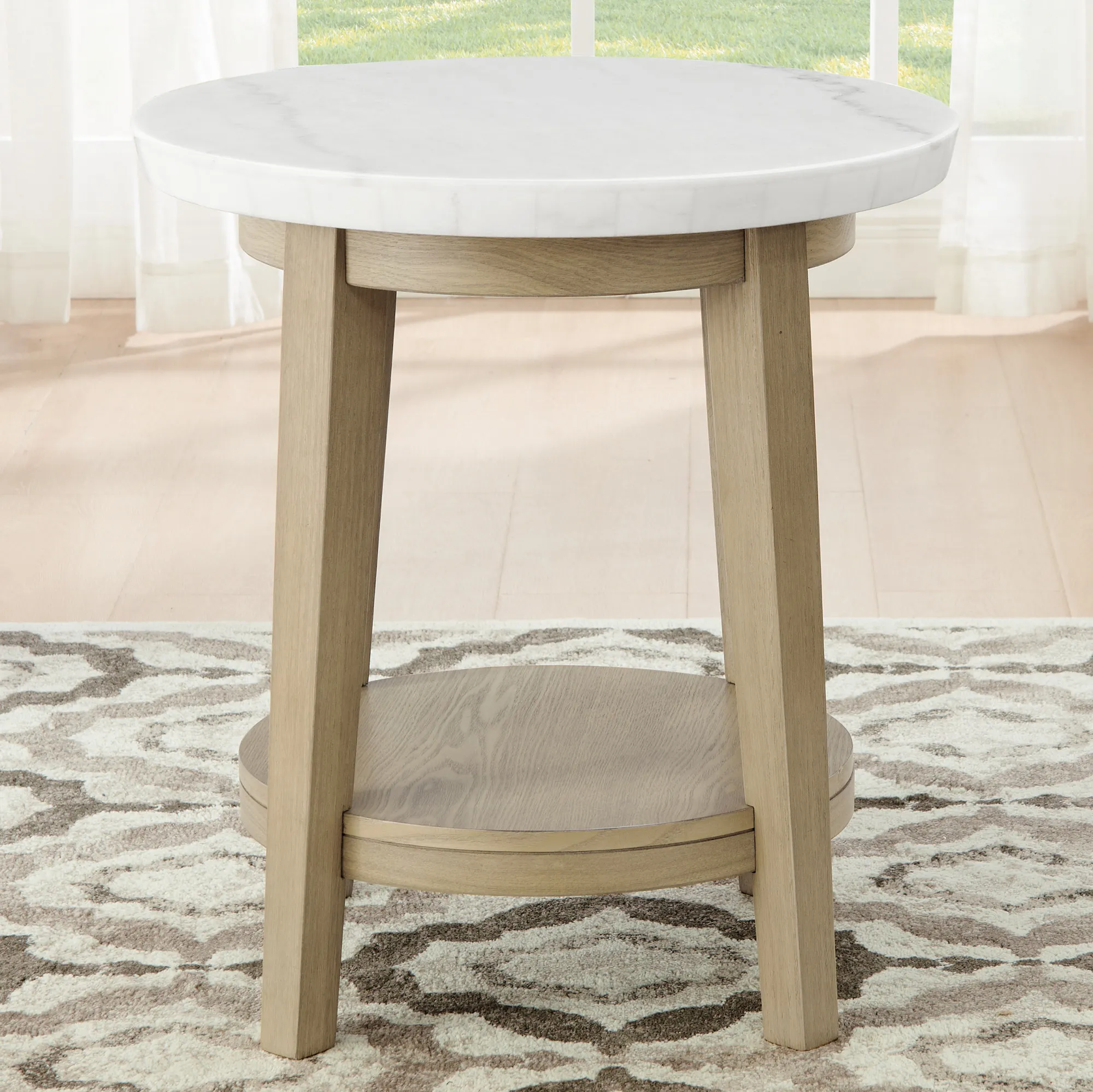 Vida White Marble Top Round End Table
