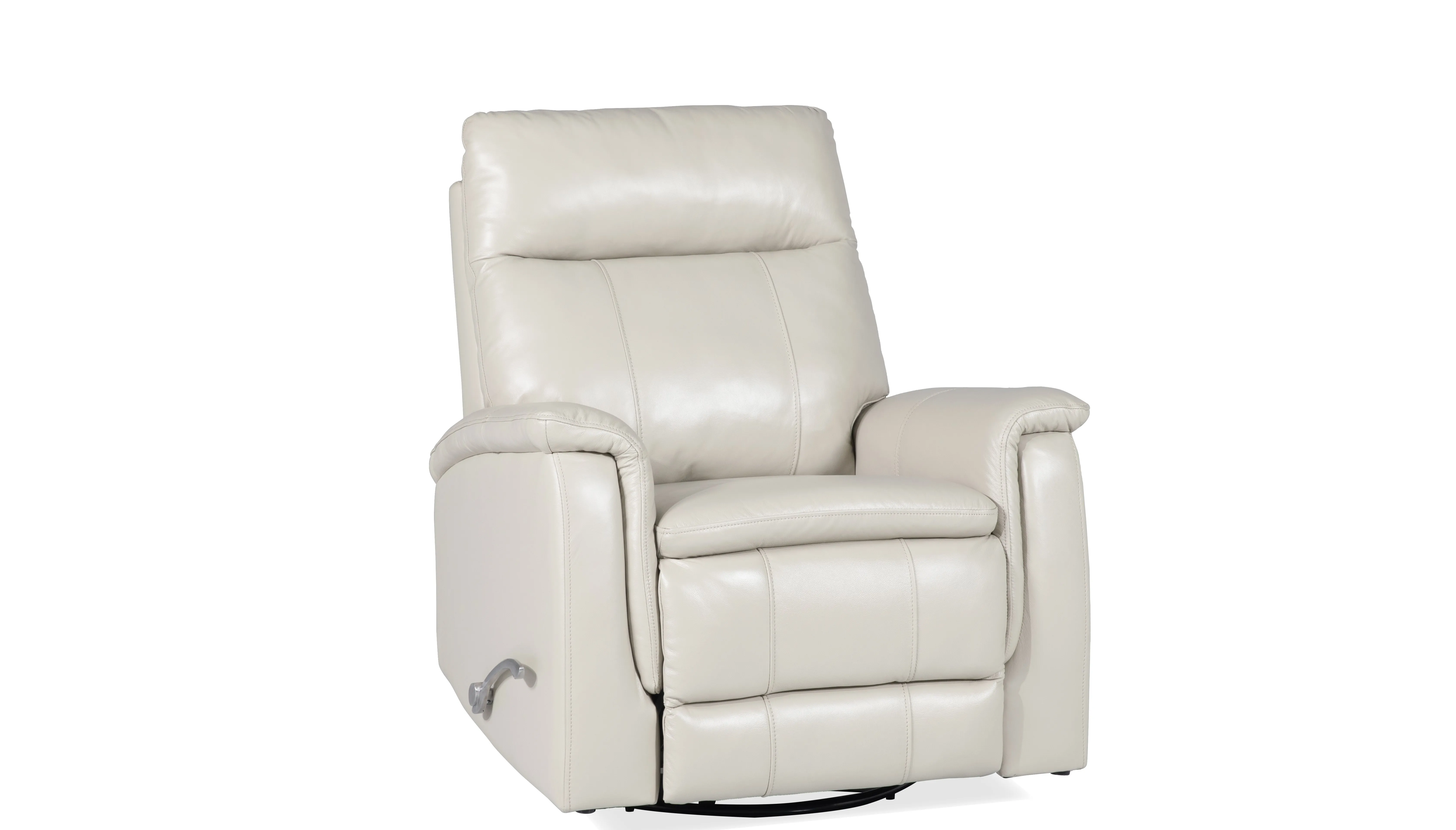 Best in Class Top Grain leather recliner, constructed of solid wood kiln dried frame with high density foam with heavy duty steel mechanism. Recliner can be easily opened and closed using the large stylish metal handle. This Leather recliner features both swivel and glide features for maximum comfort.