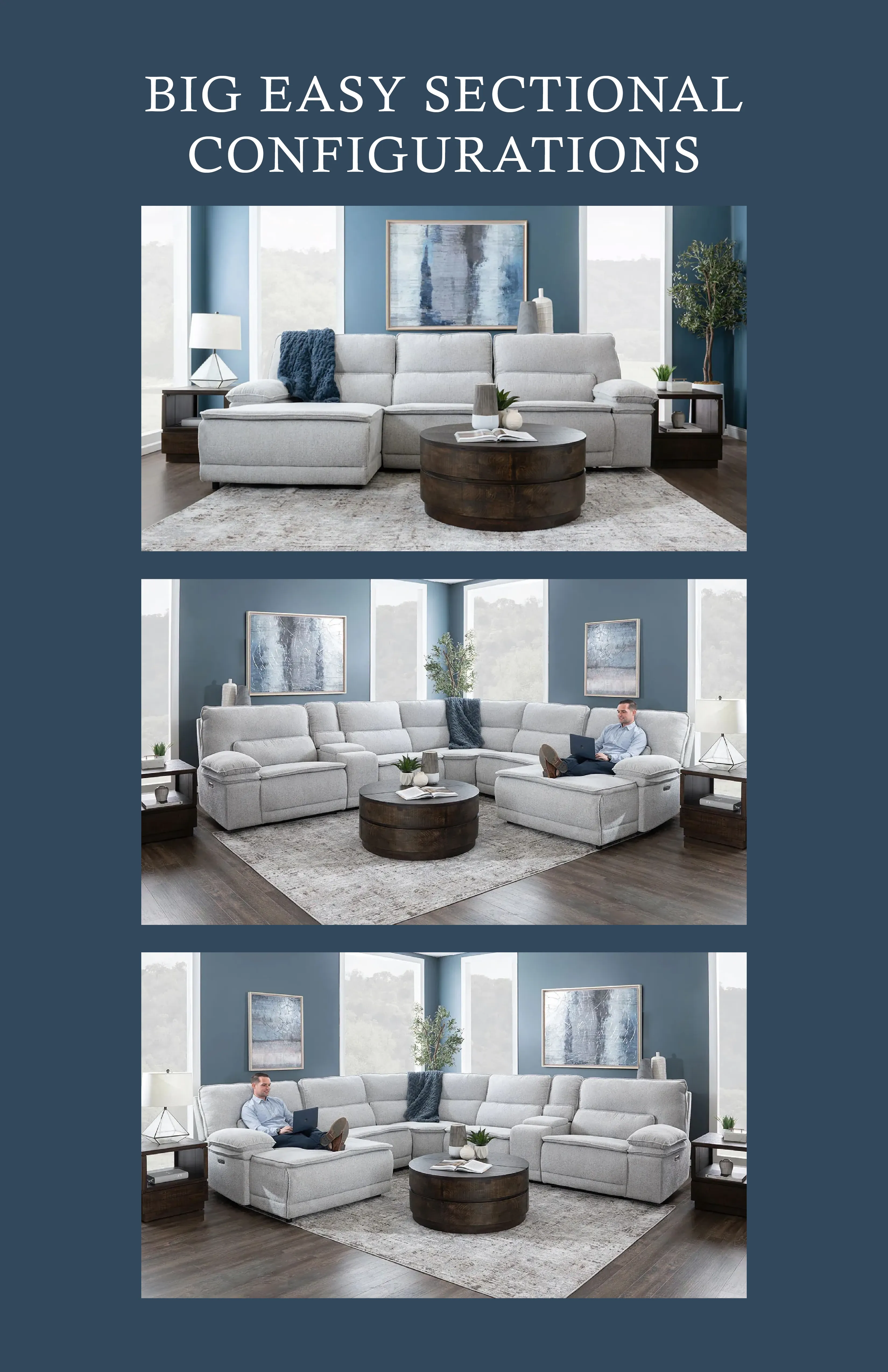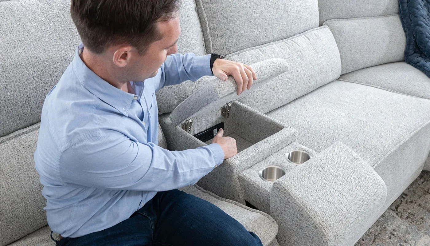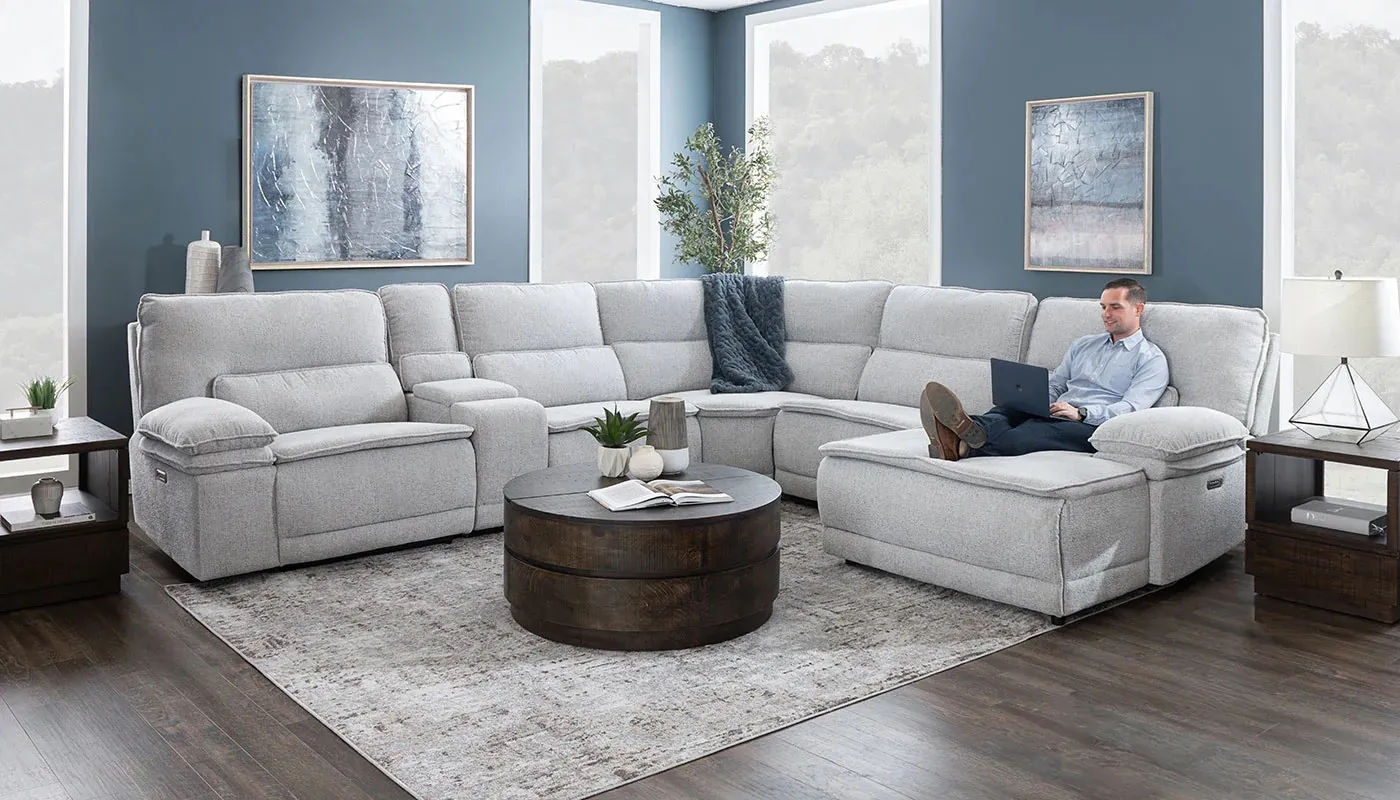 Experience the ultimate in comfort and style with our Big Easy modular sectional. Upholstered in a luxurious 100% polyester chenille fabric, this collection offers both durability and a soft, inviting feel. The oversized, deep seating design ensures maximum relaxation, with seat cushions filled with 2.2 high-density foam and supported by sinuous coils for exceptional comfort and longevity. Embrace modern convenience with the addition of power reclining and power headrests, allowing you to effortlessly find your perfect position at the touch of a button. This modular sectional adapts to your space and lifestyle, making it perfect for any living room setup. For added convenience, the console features built-in cup holders, a wireless charger, and a power pack, keeping your essentials within easy reach. Elevate your living space with our Big Easy sectional – where comfort meets functionality.