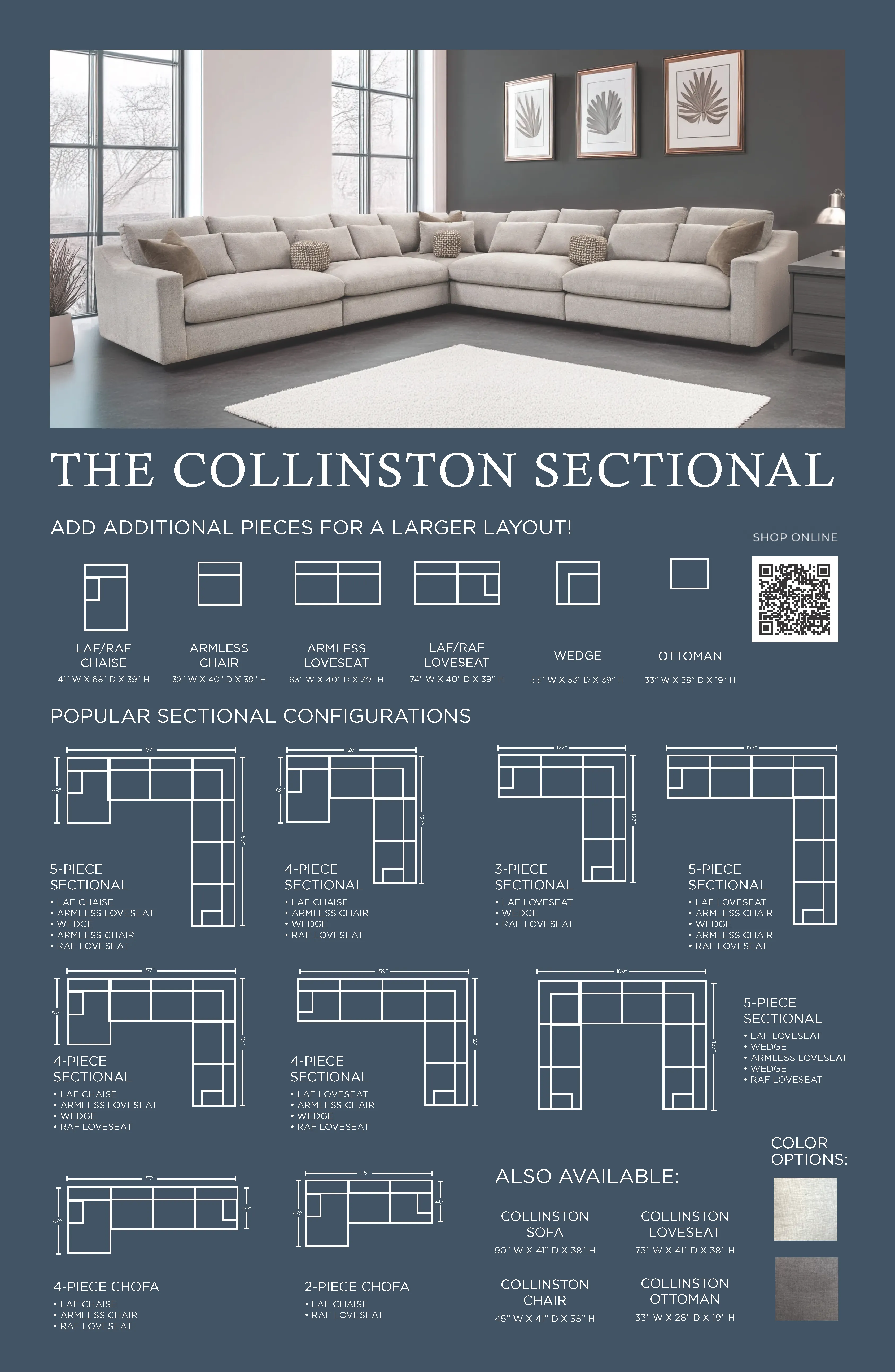 The COLLINSTON 4PC SECTIONAL may be available at American Factory Direct in the