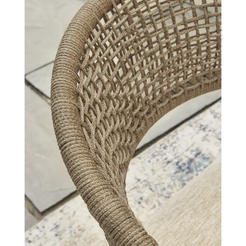 Whether decking out your deck or patio or making a splash by the pool, this outdoor arm chair with cushion is all about easy-breezy outdoor living. Its gently curved back features a nicely neutral polyester rope wrap over a sturdy, rust-resistant aluminum frame that’s sure to weather the seasons beautifully. The cushion is covered in high-performance Nuvella® fabric that withstands the elements and is oh-so-easy to clean.