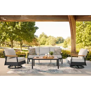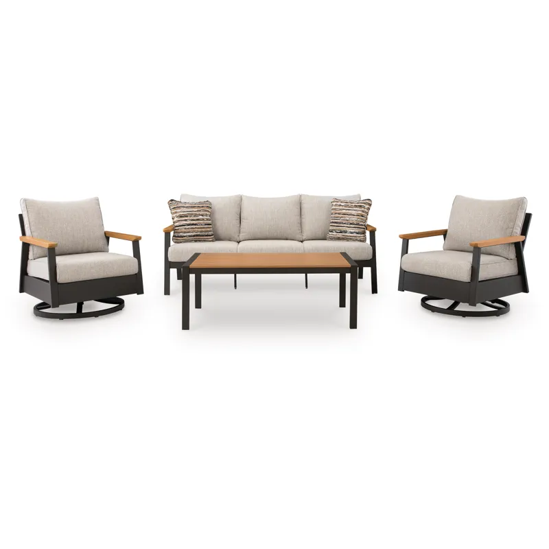 Includes sofa, 2 swivel lounge chairs and coffee table